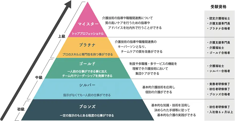 介護業界にもキャリアパスが導入されることも増えてきました。自分がスキルアップできる環境で適正に評価されることにより、長く働きやすい職場環境を目指しています。