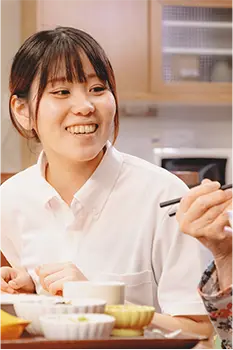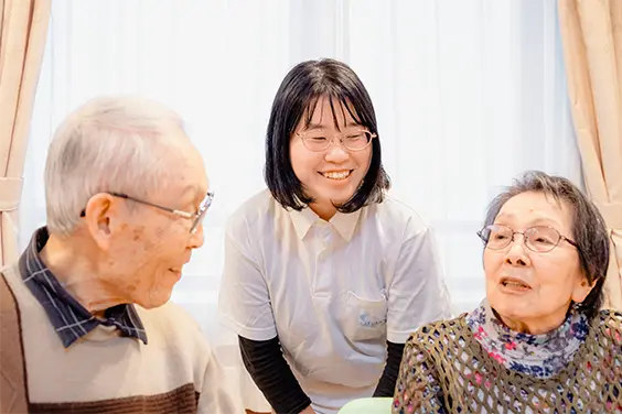 入浴・食事・排泄の生活介助やデイサービスでのアクティビティを通して、入居者様一人一人に合った、その方らしい暮らしをサポートするお仕事です。
